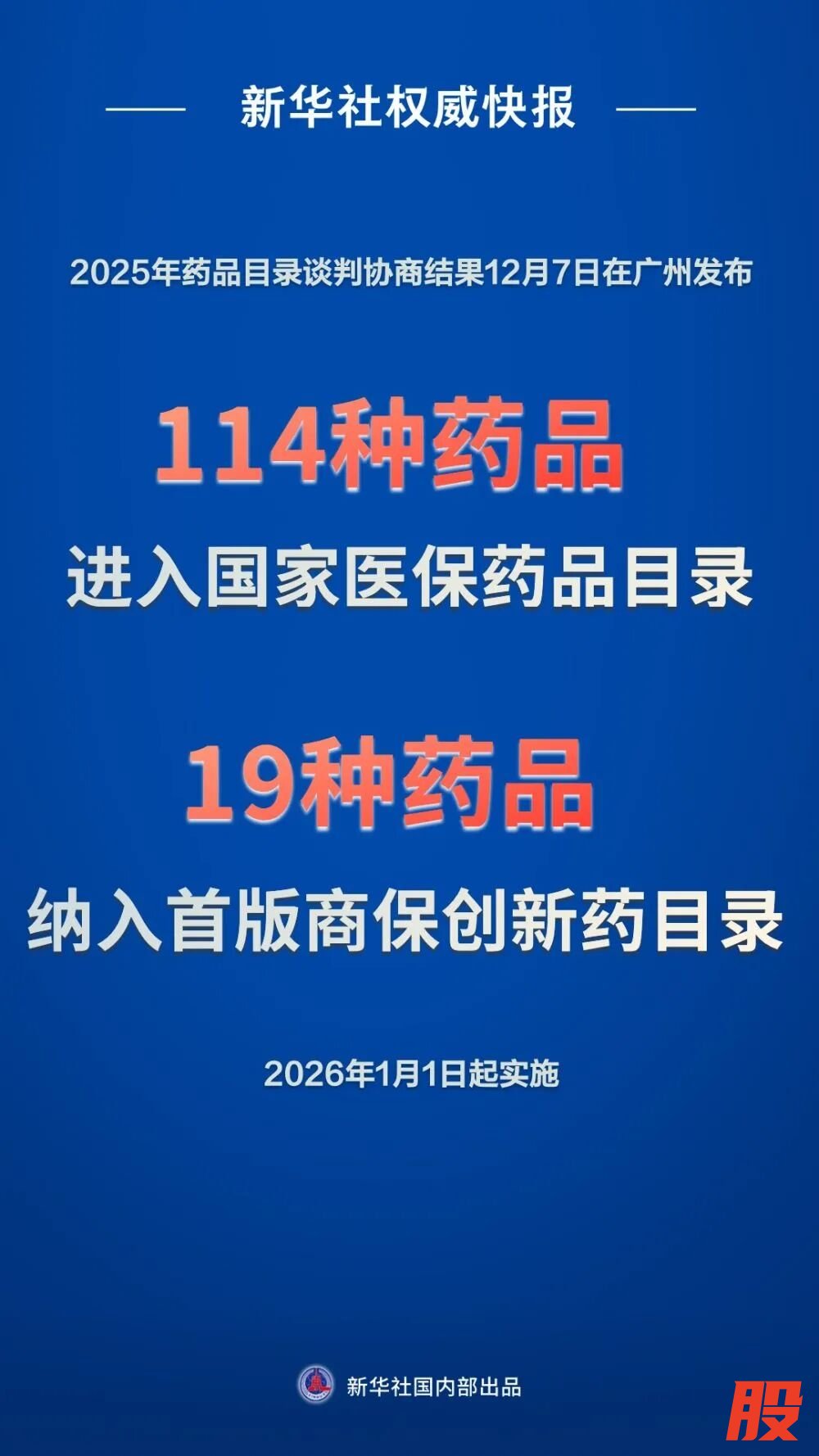 记者12月7日从国家医保局获悉,2025年国家医保药品目录及首版商保创新药目录在广州发布。2025年国家医保药品目录成功新增114种药品,有50种是一类创新药,总体成功率88%,较2024年的76%明显提高。19种药品纳入首版商保创新药目录。