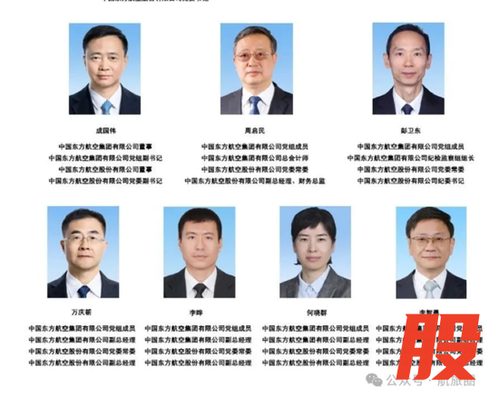 东航董事长王志清,总经理高飞,下图为东航其他班子成员: